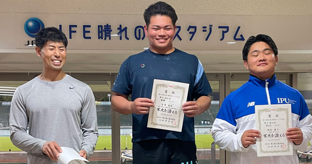 中学男子110mH以外の大会新記録は、男子では100mで岡山県記録保持者の木梨嘉紀(筑波大)が10秒30を、砲丸投では赤澤瑠依(玉野光南高)が16m01、400m予選で岩崎立来(SPORCE)が47秒48をマーク。女子では1500mでドルーリー朱瑛里(津山高)が4分19秒10、100mHでは安井麻里花(青学大)、中学100mHでは酒井麻帆(アスリートジャパン)が13秒67の大会新記録で優勝しました。